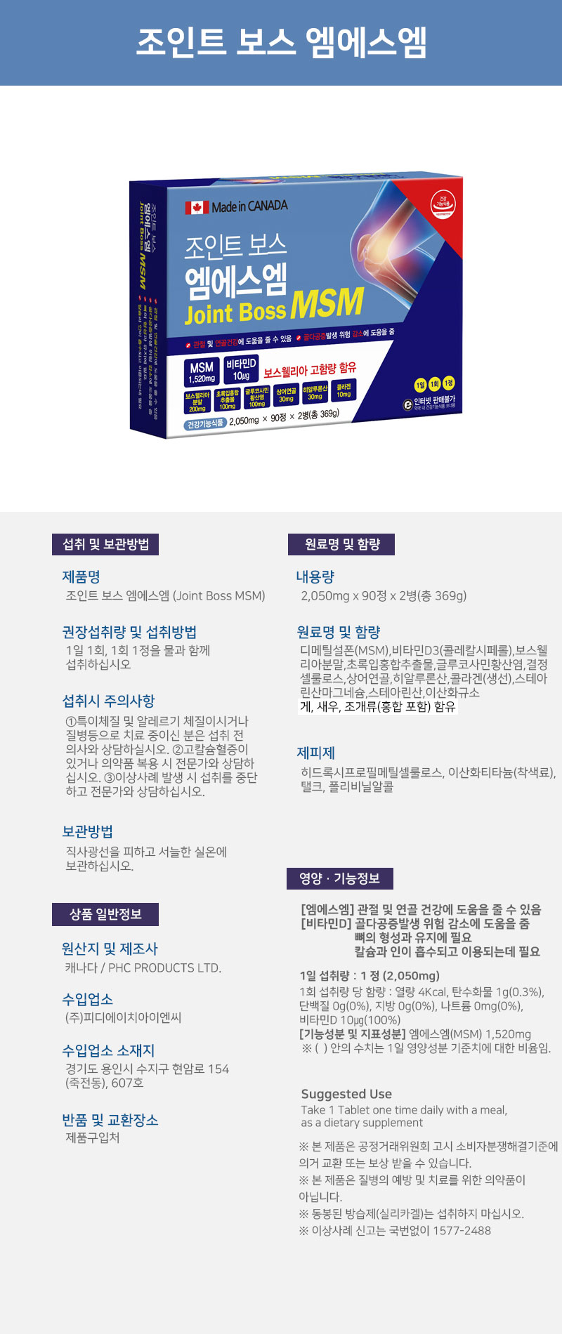 조인트 보스 엠에스엠 2,050mg*90T*2EA