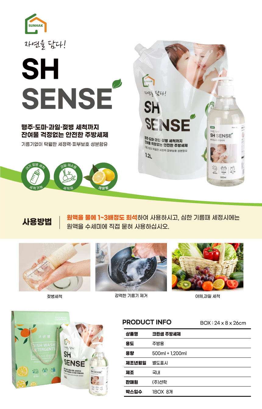 [크린샘] 베이킹소다 주방세제 2종세트 (500ml용기,1200ml리필)