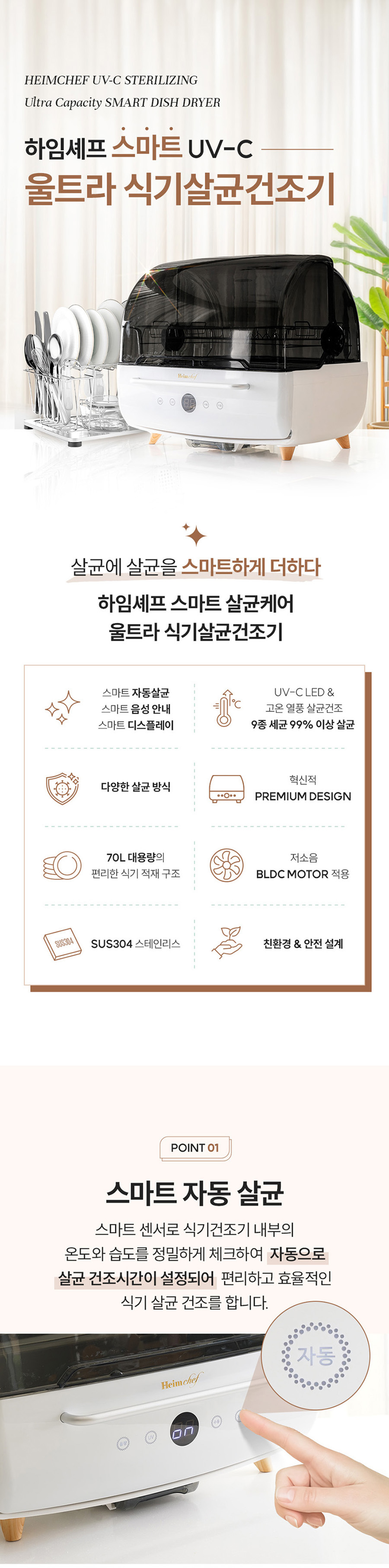 70L 대용량 열풍 살균 자동모드