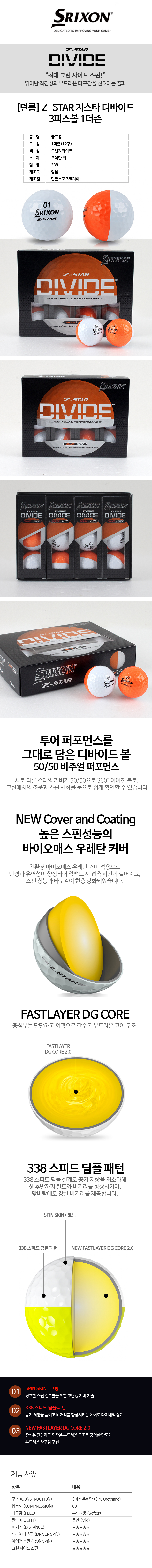 [던롭 스릭슨] Z-STAR8 DIVIDE 지스타8 디바이드 3피스 골프공 오렌지화이트 1더즌
