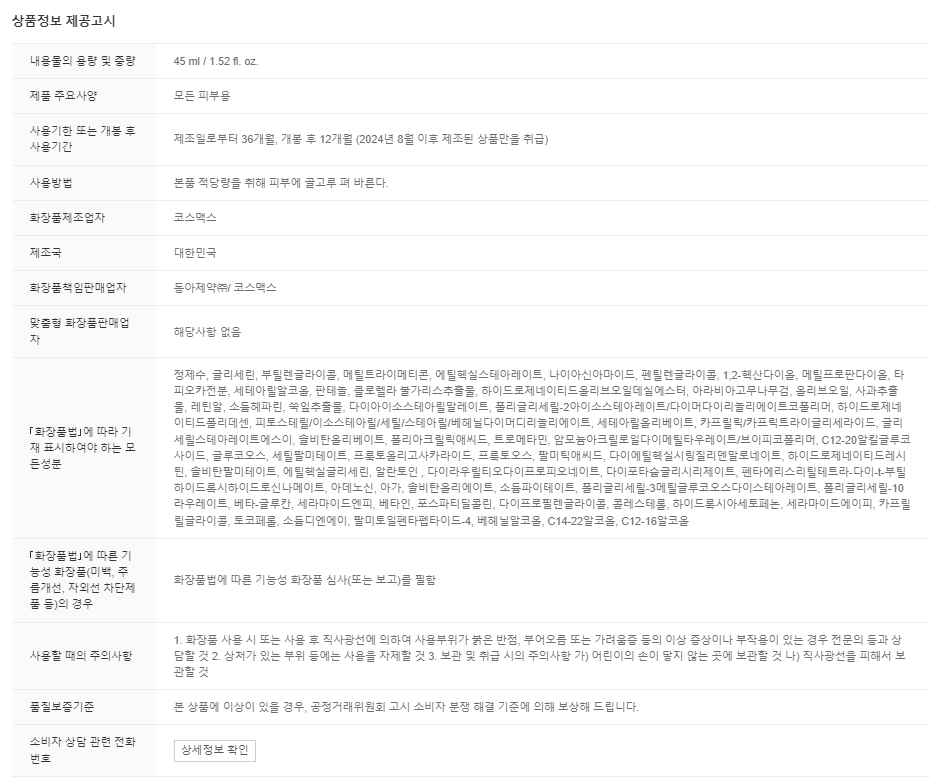 • 「화장품법」에 따라 기재ㆍ표시하여야 하는 모든 성분