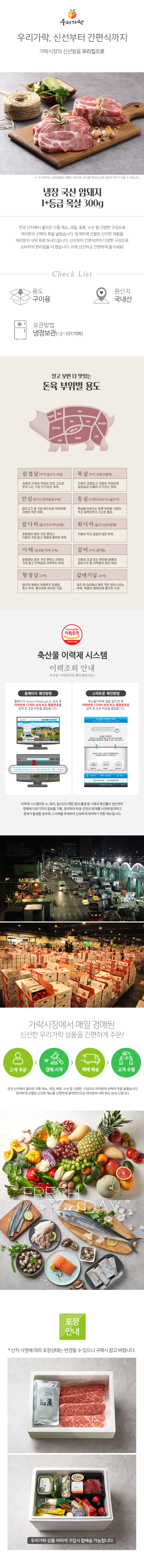[새벽배송][우리가락]냉장 국산 암돼지 1+등급 목살 300g