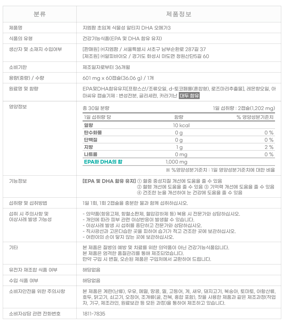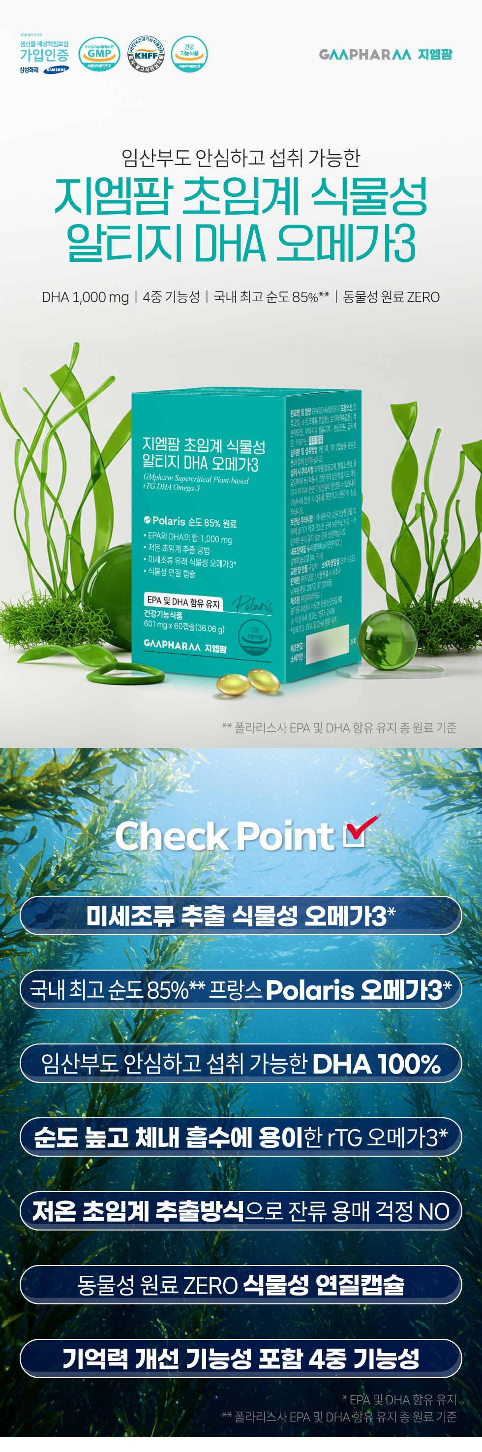 [지엠팜] 임산부 초임계 식물성 알티지 DHA 오메가3 60캡슐