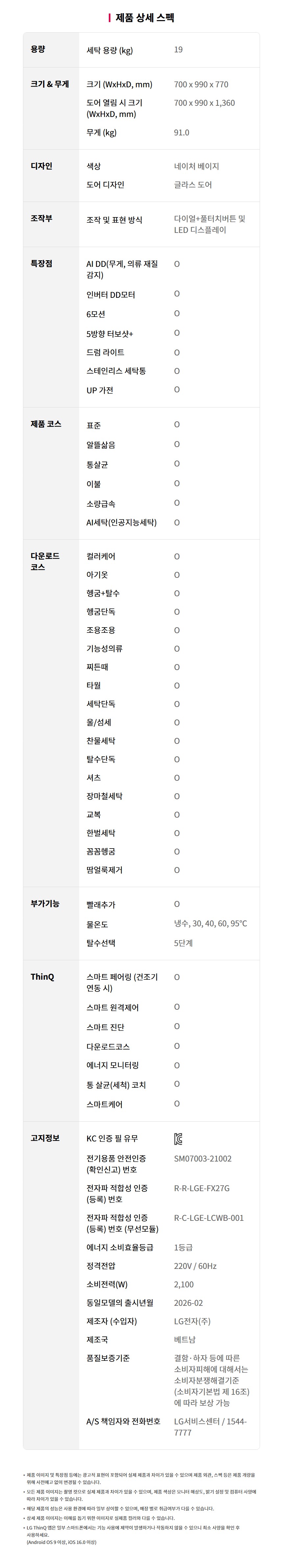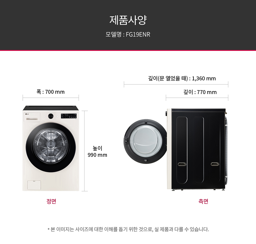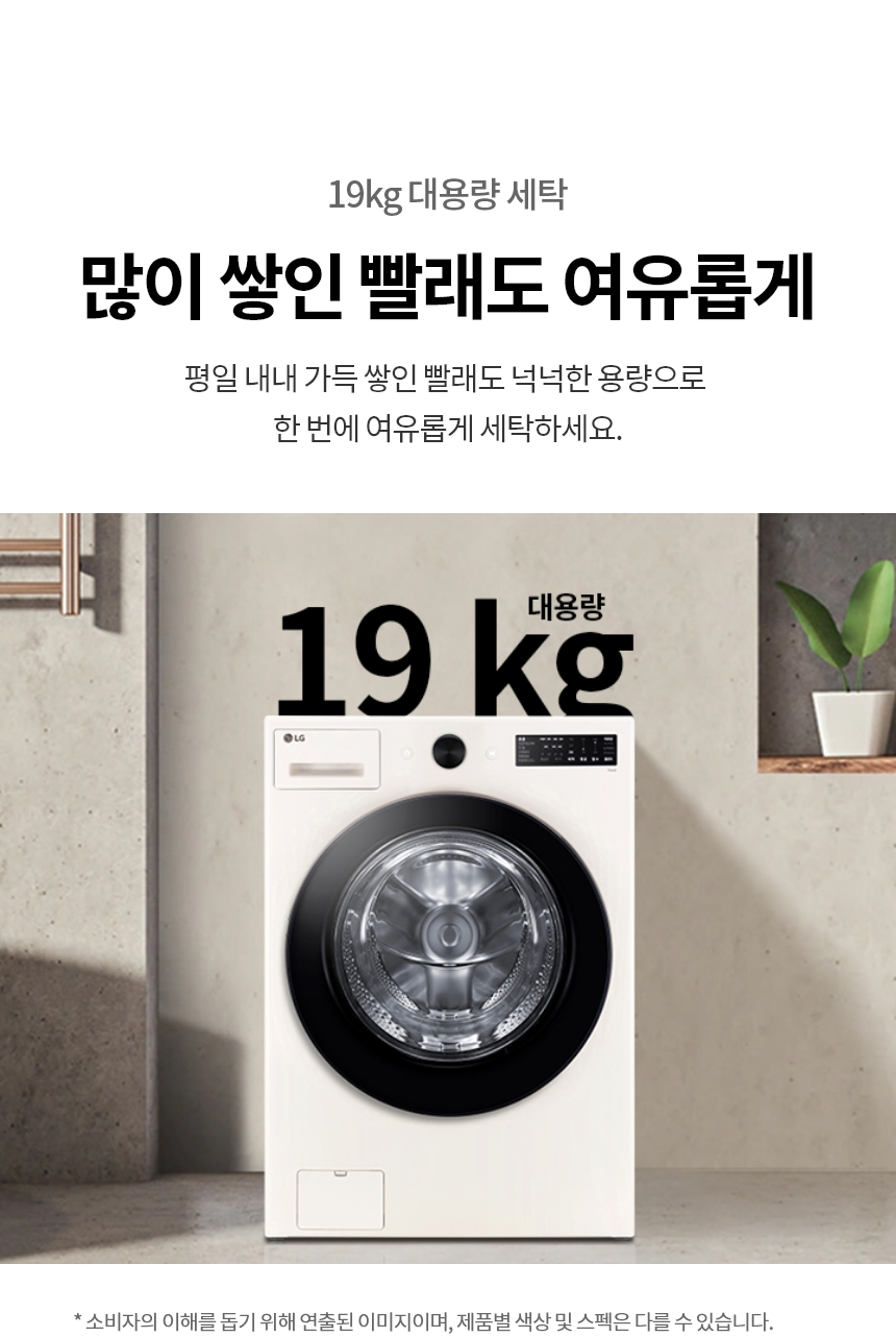 [LG전자] 트롬 세탁기 19Kg 1등급 네이처베이지 (FG19ENR)