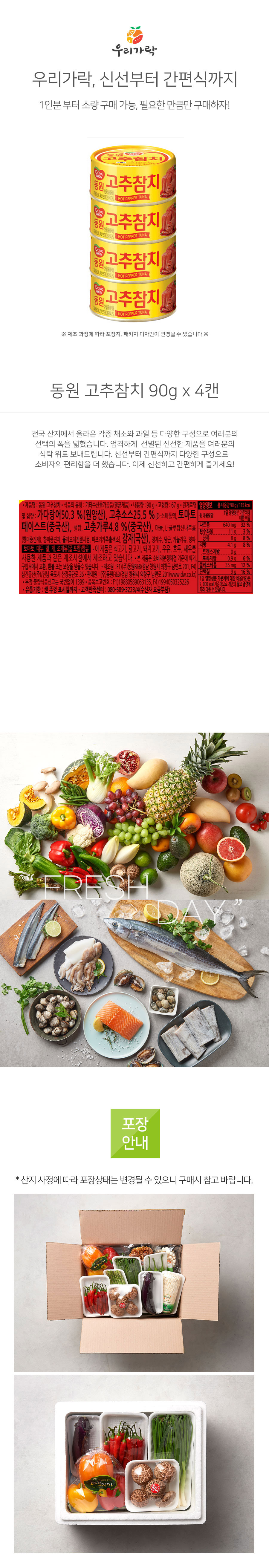 [새벽배송][우리가락]동원 고추참치 90g x 4캔