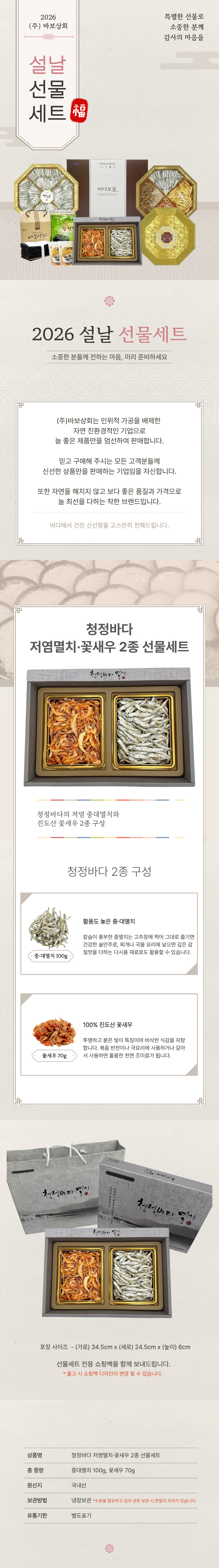 [바다보물] 청정바다 저염멸치 꽃새우 2종 선물세트