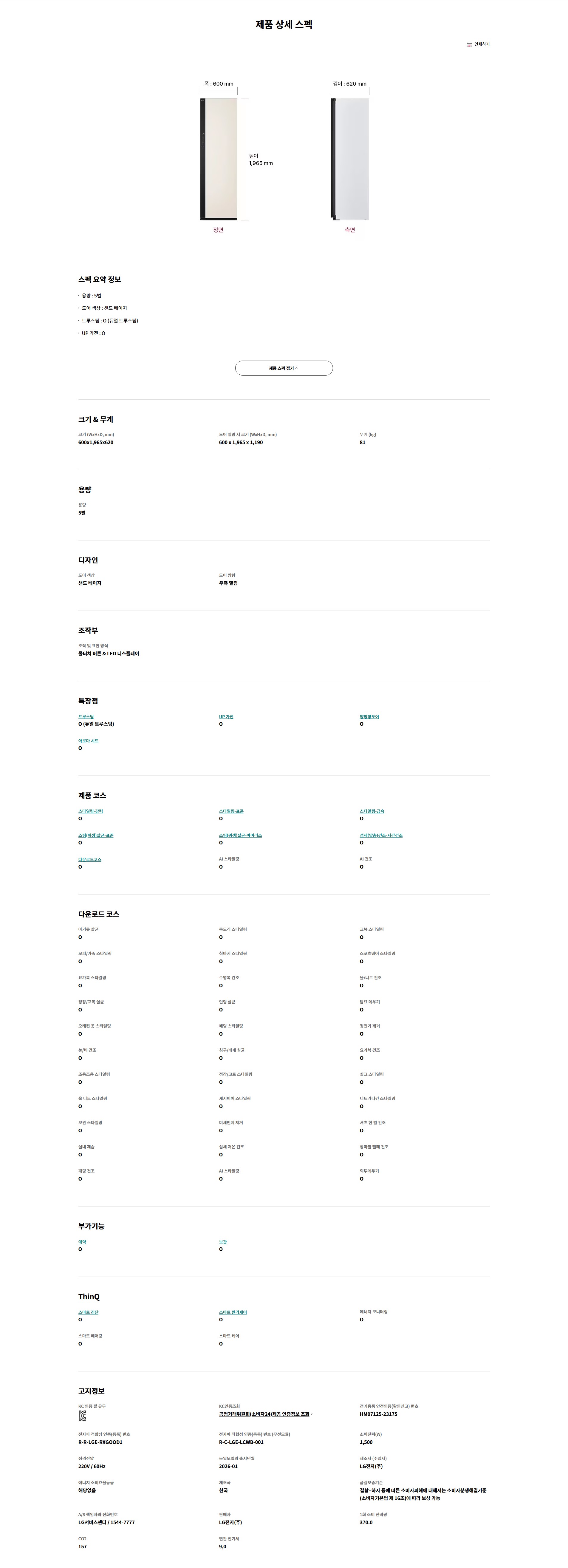 [LG전자] 스타일러 오브제컬렉션 2026 NEW + 5벌 샌드베이지 (SC5MBR43S)