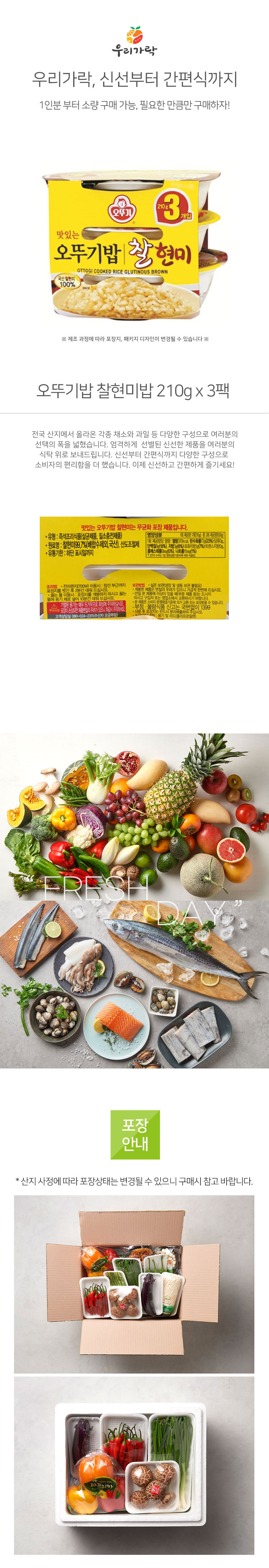 [새벽배송][우리가락]오뚜기밥 찰현미밥 210g x 3팩