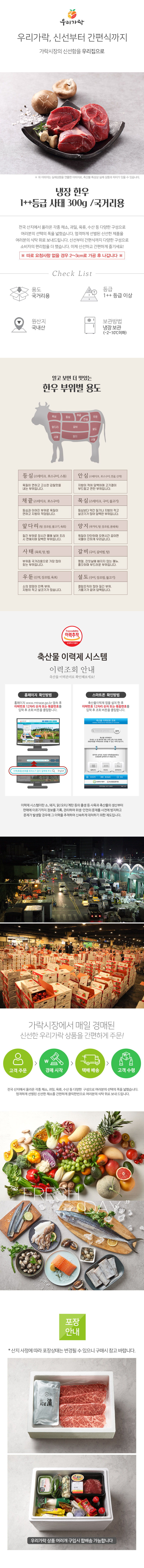[새벽배송][우리가락]냉장 한우 1++등급 사태 300g /국거리용