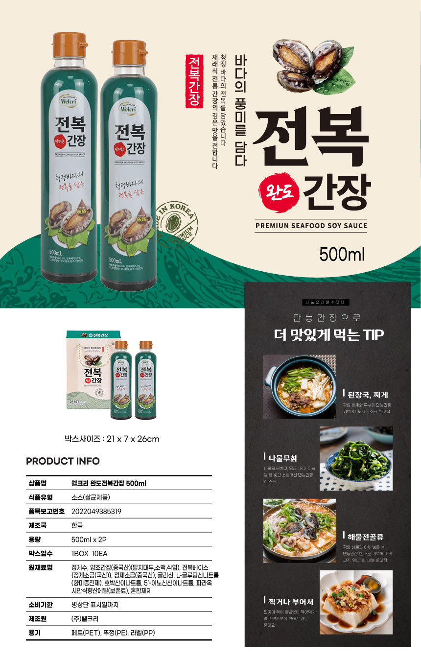 [웰크리] 설명절 완도 전복간장(PET병) 500ml * 2p